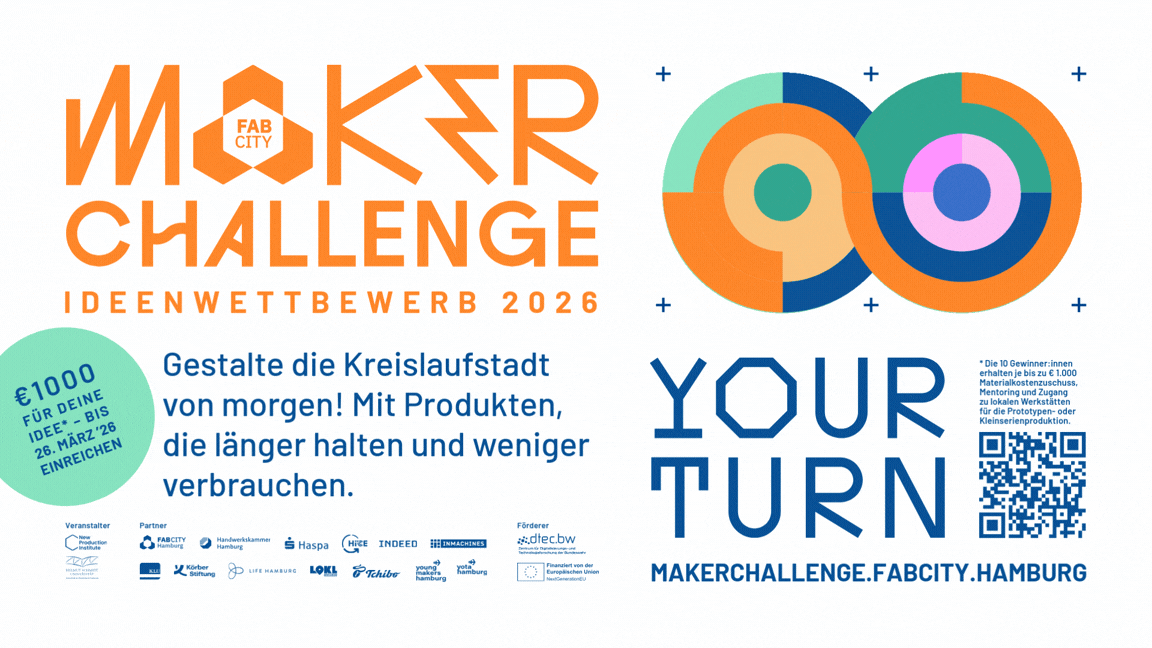 The Maker Challenge 2026 is an open ideas competition for Hamburg and the metropolitan region that brings together stakeholders from urban society, business, and research to jointly develop sustainable solutions in line with the Fab City vision and the circular economy.